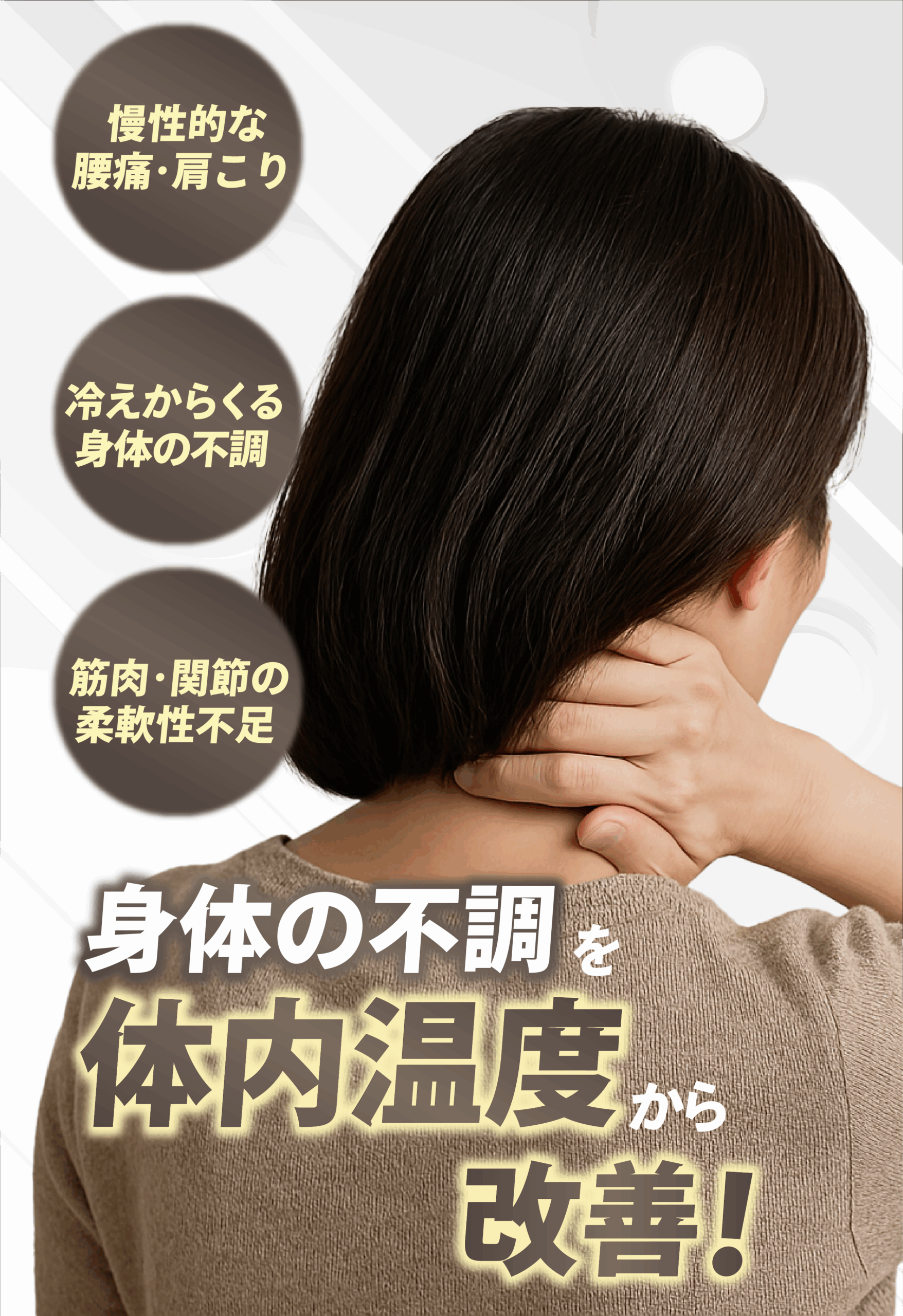 身体の深いところから、温熱効果を促すことができるため太い血管が通っていない腰などにも効果を発揮しやすいです。従来の医療機器だと、表面的な温熱効果はあるものの、持続的な血行改善には乏しい傾向がありました。
