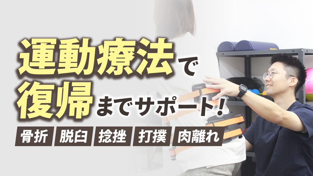 日常生活やスポーツにおいて、「痛みやケガを繰り返す」ということを避けるためにはリハビリは必要な時間です。普段は、湿布や薬だけで痛みを抑えていたという方も運動機能は戻っていないため、再度同じように痛みが出てしまうことが多いです。