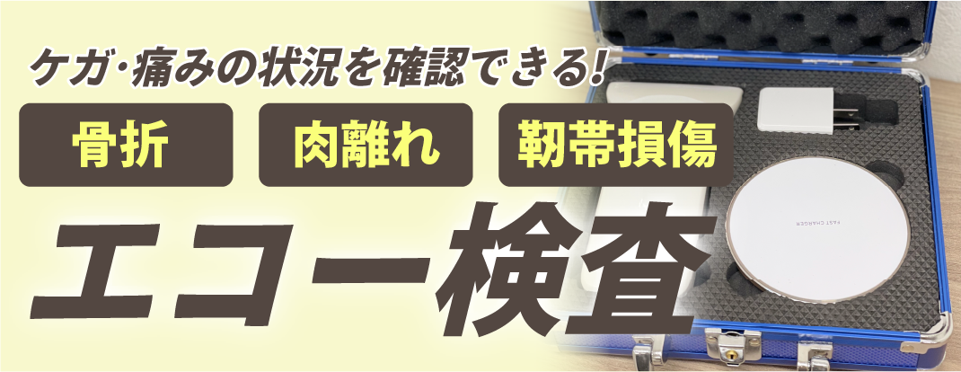 当院では、人体に無害のエコー検査を実施しているため、ケガの検査から処置までをトータルサポートしています。