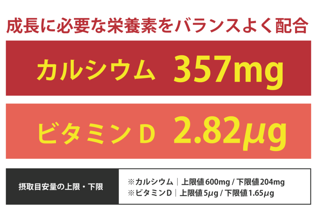 国の規格基準をクリアしたサプリメントです。サプリメントの摂取のみで身長が伸びるわけではありません。一つの手法であり、その他にも生活でやるべきことについて指導させていただきます。